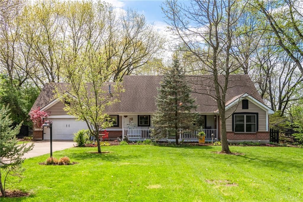 Discover unparalleled tranquility in this custom ranch, perfectly situated on 1.28 acres of beautifully wooded land with a Centerville address, but in the Springboro School System. This residence offers a serene escape, blending sophisticated design with the peace of nature. The recently painted exterior enhances its curb appeal, inviting entry into a home where comfort and elegance seamlessly reside. The interior features an expansive living area with soaring cathedral ceilings, creating an atmosphere of spaciousness. The thoughtfully designed floor plan ensures optimal privacy, with the primary suite distinctly separated from the two additional bedrooms. The gourmet kitchen is well-appointed with modern conveniences including a gas oven/range, dishwasher, garbage disposal, and microwave, catering to all culinary requirements. Outside, a welcoming rear patio and charming front porch provide ideal settings for relaxation or entertaining amidst the lush surroundings. This property presents a unique opportunity to embrace a refined lifestyle characterized by comfort and natural beauty while being close to shopping and restaurants.