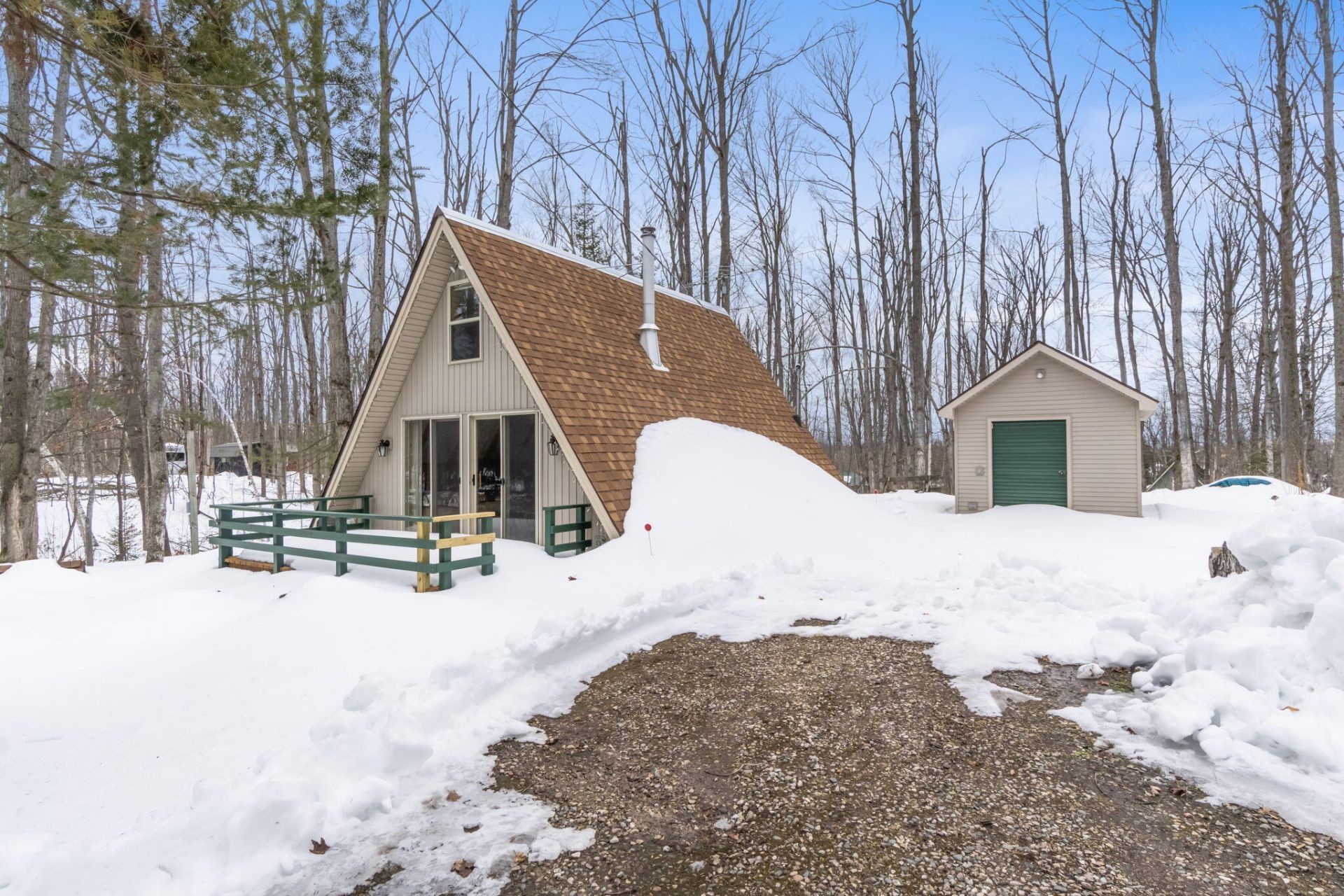 Built with intention and finished with pride this just over 800 total sq ft A-frame chalet is the definition of quality over quantity. This home reflects sweat equity and precision workmanship. From the sharp, clean cuts to the thoughtful upgrades, this has been purposefully designed and maintained. Recent improvements include a new roof and water heater, giving peace of mind where it matters most. Beneath it all, an encapsulated crawlspace, rigid foam insulation, and eco-cell insulation to the knee wall create a solid, energy conscious foundation. This is the kind of place where craftsmanship shows and it shows well. Whether youre looking for a Northern Michigan getaway, a low-maintenance primary residence, or a smart investment, this chalet stands out from the crowd.