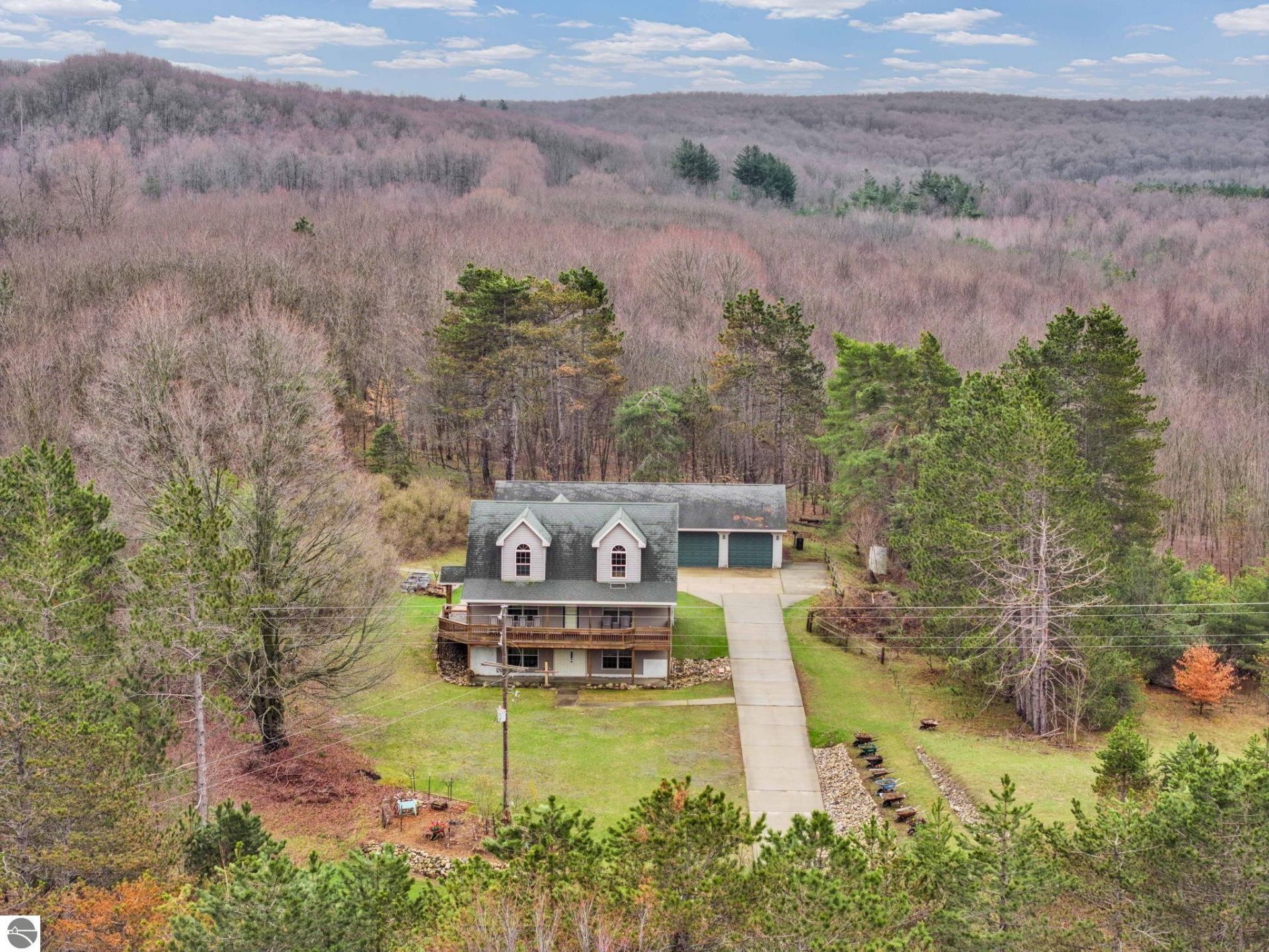 Perched atop a scenic hill, this custom-built 3 bedroom, 4 bath home offers the perfect blend of privacy, functionality, and true Northern Michigan charm. From the moment you arrive, you???ll appreciate the beautifully maintained landscaping, raised garden beds, and expansive concrete driveway with plenty of space for guests and recreational vehicles. The oversized 3-car garage with a dedicated workshop area is ideal for hobbyists or storing all your Up North toys, while the whole-house Generac generator and security system provide added peace of mind. Start your mornings on the covered front porch with a cup of coffee, taking in the peaceful surroundings, watching the birds, and overlooking your garden space. Step inside to a warm and inviting interior filled with wood accents that create that cozy, cabin-inspired feel buyers are searching for. The main level features two comfortable bedrooms, while the upper level offers a spacious third bedroom, full bath, and an additional living area???perfect for a home office, second family room, or easily converted into a fourth bedroom if desired. The walkout basement provides incredible potential with two egress windows and an additional bathroom already in place???ready for your finishing touches to expand your living space even further. Located on a county-maintained road with high-speed internet available, this property offers convenience without sacrificing that peaceful, country setting. Just a short drive to both Cadillac and Traverse City, and only minutes from the Manistee River where you can enjoy kayaking, fishing, and hiking???this is the Up North lifestyle you???ve been waiting for!