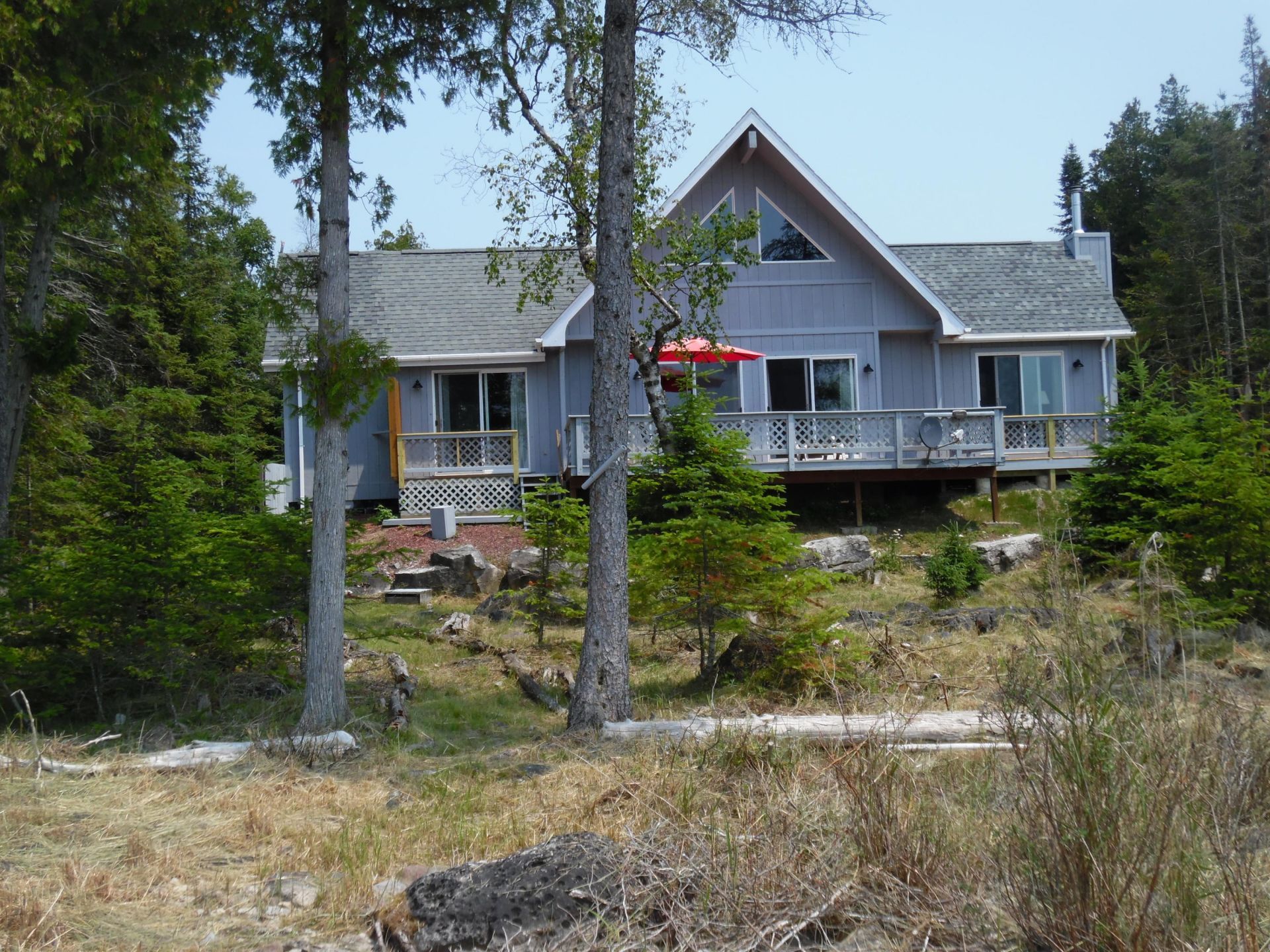 PEACEFUL, pristine sight for this IMPECCABLE all season waterfront site built home with sunsets, freighter views! There is a Osborne wood fireplace, plus baseboard electric heat, Bruce tongue & groove oak floors, quartz kitchen countertop, plus porcelain tile floors with 2 bedrooms, 2 bathrooms,. All materials high quality. There are open decks with even outdoor shower, space for outdoor grill. There is a 16KW all house generator plus 2 garages & a shed to store vehicles and toys. Driveway is asphalt. Path out front to rocky beach. Call a Realtor to see.