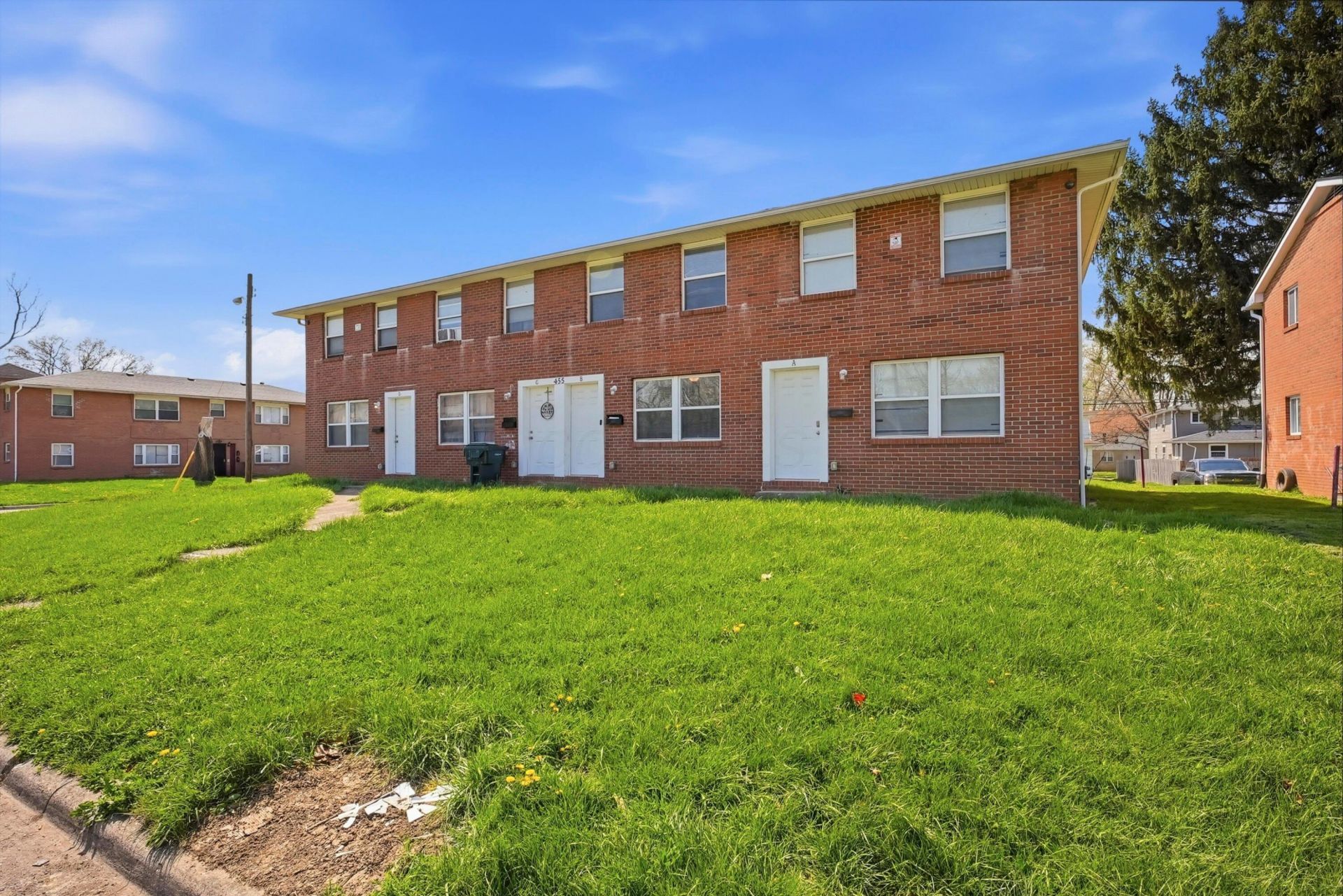 Calling all Investors or House hackers! This opportunity is for you! This 4 Unit is Townhouse style and features a 2 Bedroom/1.5 Bathroom unit per unit. It is located minutes from Bexley, Whitehall, Airport, DSCC Military Base. Also close to the Highway, shopping, local eateries, coffee shops and restaurants. One unit is vacant and ready for owner occupant or resident, Each unit is rented for $1050 a month but market rate is closer to $1300, this property will cashflow beautifully and is an equity opportunity. Two of four units are occupied with stable long term tenants. You will step up into spacious front room, and big kitchen with New Cabinets and a half bathroom. As you go upstairs, you will see Two spacious Bedrooms and a beautifully updated bathroom. The Basements are beautiful, and host the laundry and room for storage. New Mechanicals installed in 2023. As you step out the back steps there's space for parking, you'll see a large yard for entertainment, relaxation, and pets! Easy to see the vacant unit, reach out today to view! Also this unit can be packaged with 441-447 Barnett for a total of 8 units