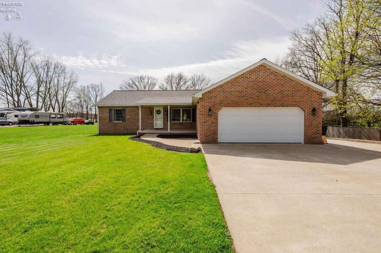 Perkins Ranch with Pole Barn! This beautifully updated 3-bedroom, 2-bath home offers the perfect blend of comfort, space, and functionality. Step inside to find a cozy living room with a fireplace, newer hardwood flooring, and a fully updated kitchen featuring granite countertops, porcelain flooring, farmhouse sink, and newer appliances.The dining area features sliding glass doors that open to a 16x15 cement patio with a beautiful pergola, creating the perfect indoor-outdoor entertaining space. The owner's suite includes a walk-in closet and a private bathroom with a relaxing soaking tub.This property has been thoughtfully improved with major updates including 50-year transferable warranty shingles (approx. 3 years old, rated for 130 mph winds), a newer water heater and fresh paint throughout. A new hot water tank was installed in 2022.Outside, you'll find all new landscaping, a new mailbox, and a newer driveway apron. A spacious three-car-wide concrete driveway leads to the attached 2-car garage, while a separate stone driveway provides access to the impressive 40x40 pole barn complete with electric and water perfect for storing boats, campers, RVs, or creating a workshop space.Situated on a generous 0.8-acre lot, this property also features a charming covered front porch and is conveniently located near shopping, restaurants, Cedar Point, Lake Erie, and more.