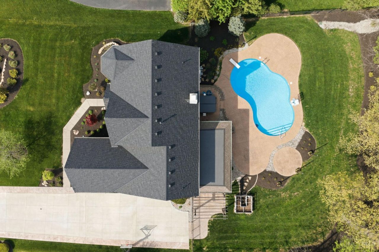 Your summer oasis awaits in Heritage Club of Mason! This beautifully updated 2-story brick home is built for indoor-outdoor living, featuring an incredible backyard retreat with an in-ground pool, separate hot tub, covered patio with gas fireplace and TV. The eat-in kitchen is the heart of it all, with a full accordion door opening seamlessly to the outdoor space plus a serving window with bar perfect for effortless entertaining and poolside gatherings. Inside, you'll find fresh paint throughout, newly refin. hardwood floors across main level, & all new carpet. Offering 5 bedrooms above grade plus a bonus 6th in the finished LL. The primary suite showcases a fully remodeled ensuite with freestanding soaking tub, custom shower, dual vanities, and updated finishes. The fin. LL features engineered HW flooring and a gaming center as well as theatre area. Newer roof, driveway,furnace,appliances, HWH and windows. Mason City SD.