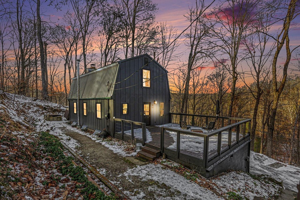 Hocking Hills getaway! Welcome to 505 Natchez Lane, a lovely barn-style home on .95 acres across two lots in the gated community of Hide A Way Hills. Enjoy community amenities including five lakes, golf course, pool, lodge, microbrewery, fitness center, and more. This 2-bedroom, 1.5-bath property offers seasonal main-lake views from the new deck and multiple interior vantage points. Inside, the open kitchen features stainless steel appliances and a nice sized pantry. The great room includes exposed wood beams, solid wood floors, a large fireplace with brick hearth and blower, and added picture windows for abundant natural light. The spacious upper-level loft serves as the primary bedroom with great views. The lower level offers a second bedroom, wood-burning fireplace, and a versatile bonus room ideal for an office or den. An attached two-car garage provides additional convenience and storage. Outside, relax by the firepit, explore perennial gardens with deer-resistant plantings, or walk up to the 8th hole of the golf course. Recent updates include a new septic system, exterior paint, deck, picture windows, fixtures, pressure tank, appliances, garage door, gutters with leaf guards, and more. A must-see home full of character!