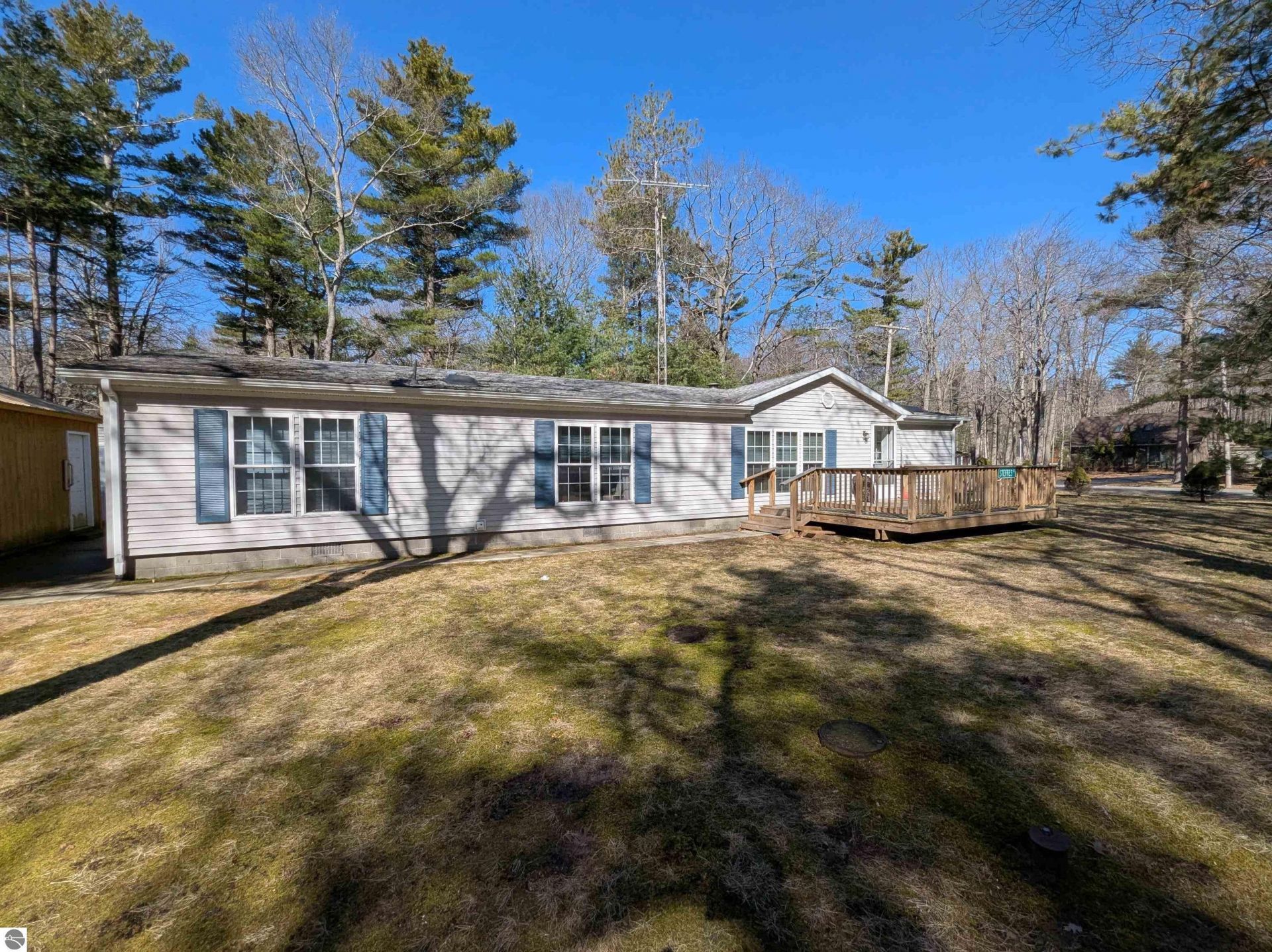 Lake Access Cottage!! This year around home sits on eight lots that goes street to street and fronts three roads all with access to sandy beach just at the end of the road on 8th Street! Three bedrooms, two baths including a private bath w/ walk-in tub and separate shower in the primary bedroom, newer natural gas furnace, Generac, leaf filter on the gutters, city water, natural gas, cabinets, countertops, and flooring. The kitchen features an eating area, pantry closet, and doorwall out to the back yard. Also enjoy a spacious living room w/ gas log fireplace. For storage there's a 12x28 1 car garage w/ roll-up door and side door, along with two additional sheds that are 8x12 and 10x16, respectively. Outside enjoy a 12x16 front deck overlooking the large side yard or gather around a fire in the cozy backyard up against the wooded area of the property.