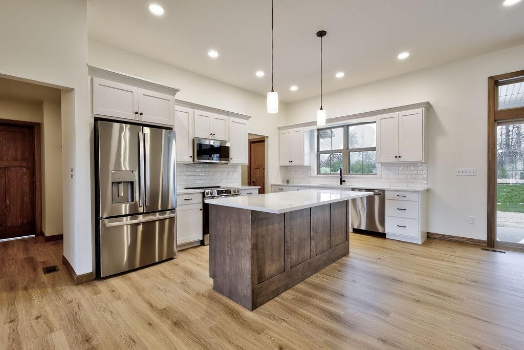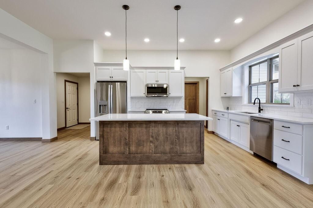 Discover this brand new home offering over 1,700 sq.ft. in the desirable Concord Crossing East neighborhood. Featuring three bedrooms, two bathrooms plus a dedicated office, this home is ideal for easy living. An accessible bike path and annual HOA fee of only $400 that provides access to the clubhouse, pool and pickle-ball court for an active lifestyle. The main living area boasts 10-foot ceilings, creating a bright and airy atmosphere. The spacious kitchen is equipped with quartz countertops while luxury vinyl plank flooring runs throughout the great room. Enjoy the convenience of a full basement that has roughed-in plumbing for a future bathroom. Additional highlights include a two-car insulated garage, a 14x14 covered patio for relaxing outdoors, and a 10'8''x14' open patio for entertaining. This inviting home combines modern features with functional design--ready for you to move in and make it your own.