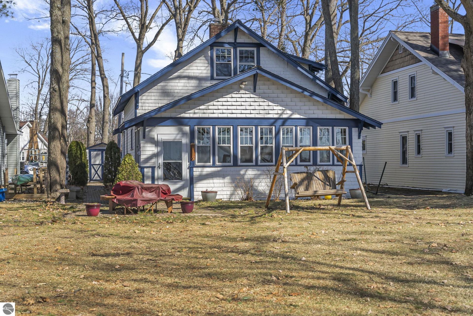 Step back in time with this well-maintained, 1930s-era Lake Mitchell cottage full of charm and character! Set your chair in the sand, dip your feet into the water as the waves roll in, and unwind to unforgettable sunsets. No seawall, just a pure, pristine, sugar-sand beach and lake bottom. This location on the lake is as good as it gets! Inside you will find a warm and inviting layout with an open staircase, brick fireplace, large old-fashion kitchen, and a cozy enclosed front porch with French doors. With 1,518 square feet, the home offers 3 bedrooms upstairs and a 4th main-floor bedroom, 2 full baths, and a main-floor laundry. Updated windows, doors, kitchen, bathrooms and exterior. The roof is approximately 10 years old. The main-floor bedroom and baths have heated floors. The dock is included. The seller also has a has a pole building with an adjacent vacant lot on the west side of Lake Mitchell which is also available for sale to a cottage buyer if interested. One of the last originals where you can make incredible up-north memories the old fashion way!