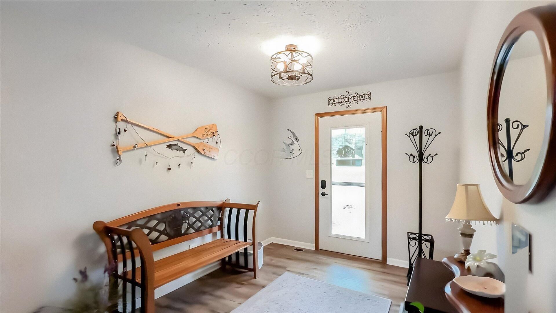 Perfectly positioned along the scenic Muskingum River, this exceptional riverfront retreat offers the ultimate blend of everyday comfort and unforgettable entertaining, whether as a full-time residence or the perfect weekend getaway. Tucked away on a quiet private drive with over an acre of beautifully maintained ground, the outdoor living space is nothing short of spectacular--featuring a sprawling rear deck, partially covered porch, and a thoughtfully designed patio with a covered pergola and fire pit, all overlooking the water and leading down to your private boat dock for effortless river access. Step inside to a welcoming foyer that opens into a sun-filled living area accented by wood beams, new flooring, and an abundance of natural light flowing seamlessly to the rear porch. The formal dining room connects to a stunning, fully updated eat-in kitchen showcasing quartz countertops, tile backsplash, soft-close cabinetry, built-in appliances, gas range, center island with seating, deep storage drawers, and a pantry. Just beyond, you'll find a walk-in storage closet before entering the oversized primary suite--complete with a fireplace, sitting area, private deck access, tray ceilings, office space, and a luxurious en-suite bath with double vanities, quartz tops, and extensive cabinetry. The spacious, updated laundry room connects to a massive walk-in closet with multi-tier shelving. The opposite wing offers 3 additional bedrooms, including a second suite with walk-in closet, along with 2 full baths. Throughout the home, enjoy new LVP flooring, solid six-panel wood doors, and updated plumbing and lighting fixtures. A fully concreted crawlspace provides excellent storage with interior access, while the detached garage and storage shed add even more functionality. Meticulously cared for and thoughtfully upgraded, this is truly a standout riverfront property designed for relaxation, entertaining, and making lasting memories.