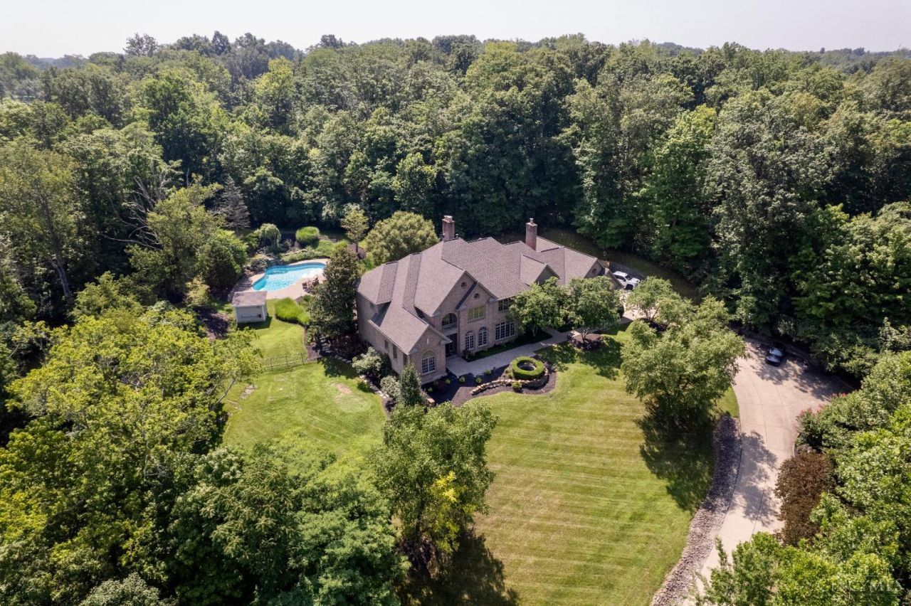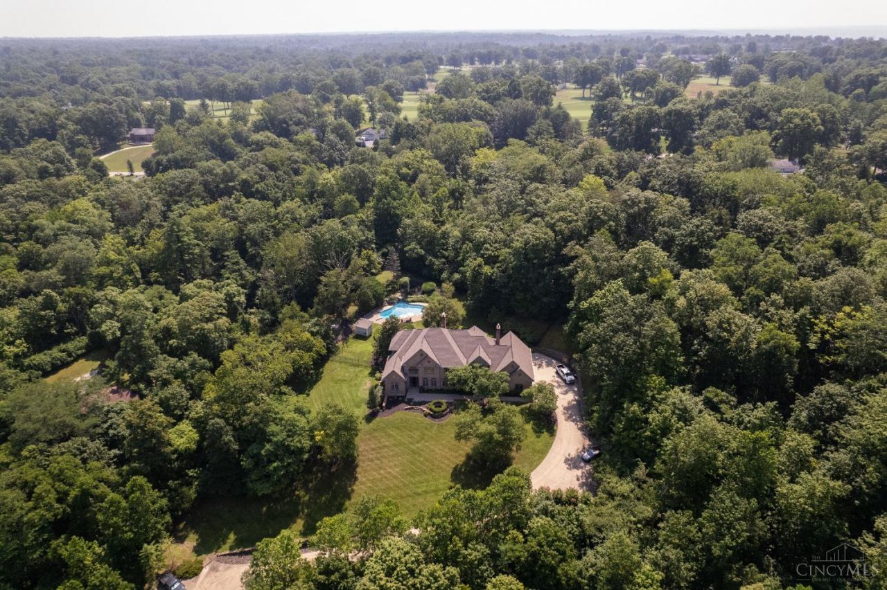 Experience timeless elegance and exceptional privacy in this custom-built Ed Weber masterpiece, offering over 8,000 SF of refined living on 4.7 beautifully landscaped acres adjacent to Coldstream Country Club. A stately gated entrance welcomes you to a home featuring 5 bedrooms, 7 baths, and a dramatic two-story great room with coffered ceilings. The chef's kitchen with an expansive island and fireside sitting area is designed for both comfort and entertaining. The partially finished lower level offers endless potential for a golf simulator, theater, or fitness space. Outdoors, enjoy a resort-style gunite pool with waterfall, a redesigned paver patio, and lush, private surroundings. A rare offering in one of Cincinnati's most sought-after communities.