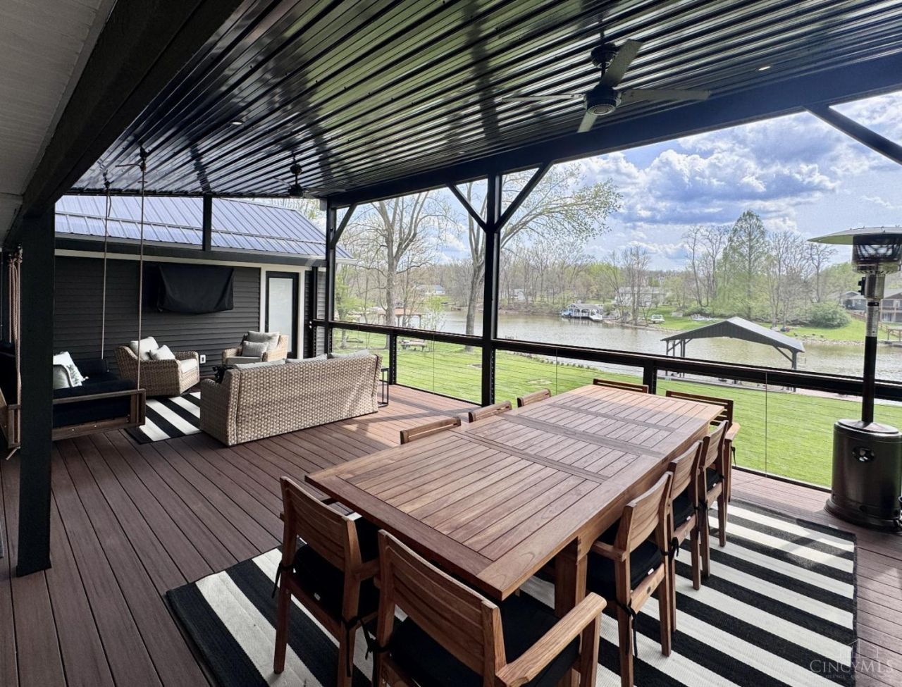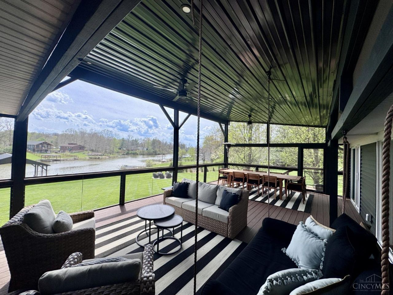 This exceptional lakefront home offers the perfect blend of comfort, style, and functionality. Featuring 5 bedrooms and 3.5 bathrooms, it comfortably sleeps up to 18 guests, including custom-built bunk beds. The open-concept main level includes a spacious kitchen with a large island, bar area, and beverage fridge, ideal for entertaining. Rebuilt in 2021 with new kitchen, bathrooms, siding, roof, windows, and updated electrical and plumbing, the home offers 3,456 sq ft plus a 550 sq ft screened-in deck. Enjoy outdoor living with composite decking, hot tub, firepit, and private flat double lot with professional landscaping. Additional features include a walkout basement with wet bar, full size fridge, and ice maker. Water toy garage, outdoor shower, boat lift, and double-slip dock with composite decking. Shoreline excavation completed in 2025.