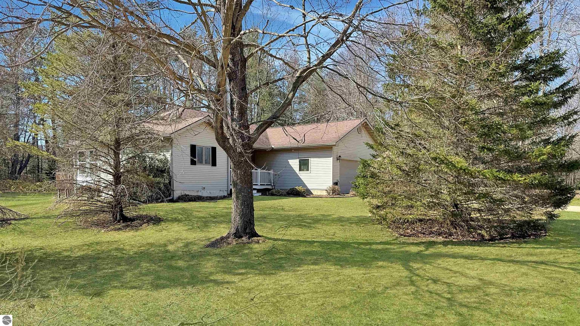 Nestled near the end of a private road in Cadillac West, you will discover this three-bedroom, three-bath ranch-style home. The home features tile flooring throughout the main level and offers an open, bright feel. The kitchen has a custom-built-in lighted wine rack and tiled backsplash. Just off the kitchen is a sun-filled four-season room. The primary bedroom is well-sized and features a large walk-in closet and direct access to the bathroom. There is another bedroom on the main level as well. The lower level features a newer bedroom suite, complete with a private bath featuring a tile-surround shower. There is a spacious recreational room, another half bath, and a finished storage room. The home has a covered front porch and a deck facing the back yard. With the one-acre lot near the end of the private road, there is that small neighborhood feel with the privacy of being out in the country. To complete this package, there is a 20??? x 36??? steel Quonset-style barn plus an additional storage shed.
